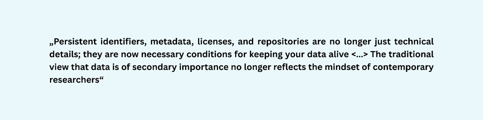 Jurgita Vaičenonienė invited conference participants to use the services and resources provided by the CLARIN-LT consortium and encouraged them to deposit data from completed or ongoing research in the CLARIN-LT repository, thereby enhancing its value and ensuring its long-term preservation, visibility, and accessibility to both national and international academic communities. The researcher emphasised that all resources uploaded to the CLARIN-LT repository are assigned a PID (persistent identifier), which “increases your visibility as researchers” (Jurgita Vaičenonienė).